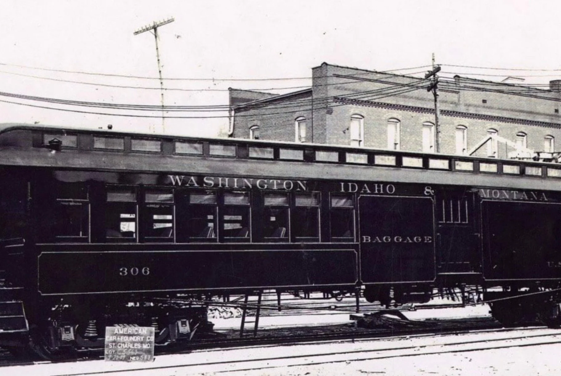 After some digging through the history books, we found a photograph of this very train car, brand new, leaving the manufacturer in St. Charles, Missouri in 1906. This was Washington, Idaho & Montana Car 306—a combination car: part cargo, part mail, part passenger.