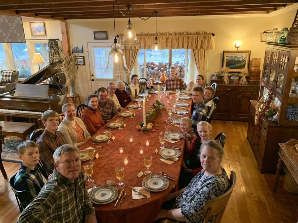 In later years, we moved to Idaho, and Thanksgiving took on a different rhythm. Cold and rainy. I loved that weather. The house was glowing and warm, a hot fire crackling in the soapstone wood stove on the old brick hearth. My older brothers married one by one and started families. Our table kept stretching longer and longer.