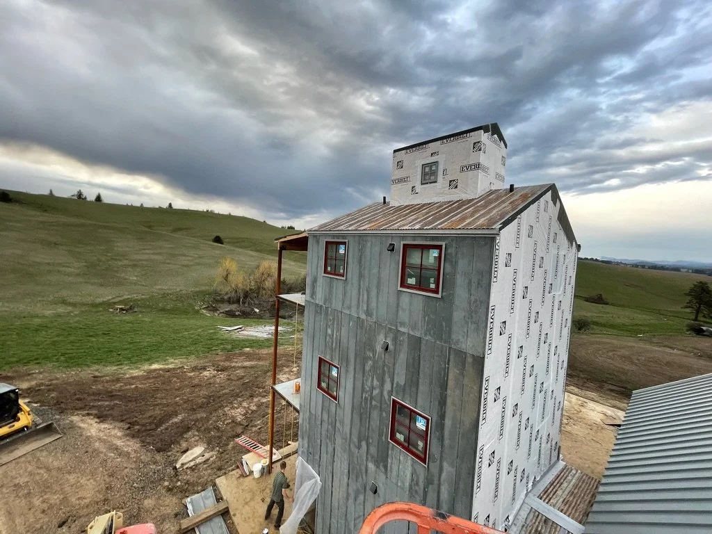 While waiting for the windows (delayed, of course), my brother John built a silo.